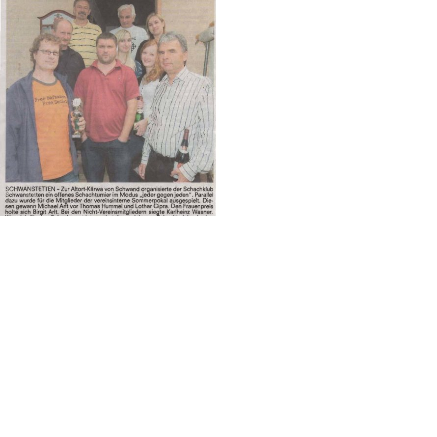 Im "Schwabacher Tagblatt" vom 15.08. erschien dazu ein Farbfoto mit Kurzbericht von unserem Turnierteilnehmer Andreas Hahn: