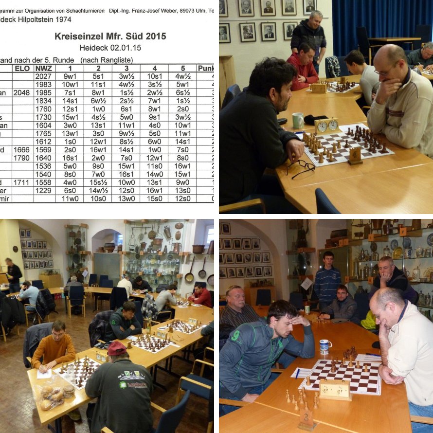 Die KEM des Schachkreises Mittelfranken-Süd wurde vom 02. bis 04. Januar 2015 im schönen Rathaussaal von Heideck ausgetragen. Zu den 16 Teilnehmern gehörten auch die Bretter 1 und 2 unserer I., aber leider kein einziger Spieler der II. und III. Mannschaft.