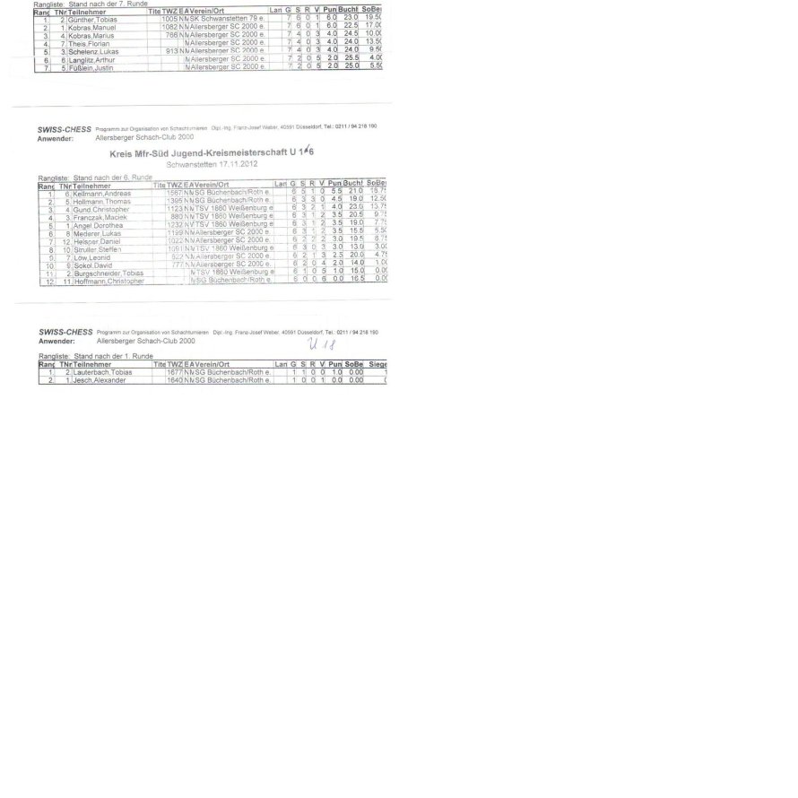 Am 17.11.12 war der SK Schwanstetten Gastgeber für die Jugendmeisterschaften der Altersklassen u14 bis u18 des Schachkreises Mittelfranken-Süd.