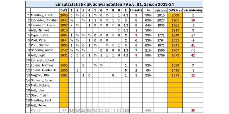 - Birgit holte drei Punkte in Folge und konnte den größten DWZ Zuwachs (mit 42 Punkten, vor Steffen mit 41 Punkten) erreichen.