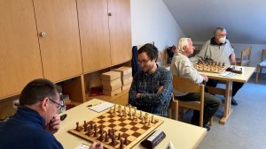 Von CK - Sonntag, 24.April 2022, High Noon in Großenseebach. Es spielt der Erste gegen den Zweiten. Der Gewinner steigt auf, der Verlierer wird Zweiter und erhält die goldene Ananas. Am Ende ist Schwanstetten der glückliche Gewinner mit 4,5:3,5 dank einer geschlossenen Mannschaftsleistung und der perfekten Ausbeute von 3,5:0,5 Punkten an den letzten vier Brettern. Frank spielte mit Weiß wie immer die Alapin Variante gegen Sizilianisch und war niemals in Gefahr, schlechter zu stehen. Kurz nach dem 30.Zug verpasste er einen starken Damenzug, der ihn in Vorteil gebracht hätte. Nach einem Turmtausch war die Partie ausgeglichen und endete schließlich mit Remis. Ich selbst spielte eine Partie, in der ich im Mittelspiel keinerlei Plan fand. Folgerichtig konnte mein Gegner seine Stellung Zug um Zug verstärken. Dennoch bekam ich – eher zufällig – eine Stellung, in der ich ausgleichen konnte. Leider kam mir der richtige Zug gar nicht in den Sinn und so verlor ich mehr und mehr die Kontrolle und die Partie. Lothar hat die Eröffnung sicherlich nicht sehr genau gespielt, aber dennoch mit viel Elan. Obwohl er zeitweise zwei Bauern weniger hatte, gelang es ihm die Stellung kompliziert zu halten. Als er die Möglichkeit hatte in Vorteil zu kommen, überschätzte er aber einen generischen Bauern und spielte zu passiv. Sein starker Gegner nutzte dies zum Sieg. Steffen konnte im Mittelspiel eine „petite combinaison“ landen und gewann einen Bauern. Es entstand ein Läuferendspiel mit gleichfarbigen Läufern und 5 gegen 4 Bauern. Ein solches Endspiel zu gewinnen, ist alles andere als einfach. Steffen versuchte das Mögliche musste aber letztendlich ins Remis einlenken. Mit 1:3 Punkten an den ersten vier Brettern sah es gar nicht gut für uns aus. Zum Glück machte es das „Hinterhaus“ deutlich besser. Michael spielte mit Weiß gegen die königsindische Verteidigung und konnte relativ schnell einen Bauern gewinnen. Sein Gegner hatte die ganze Partie über keinerlei Kompensation und geriet Zug um Zug in größere Schwierigkeiten. Da die Partie auch noch über 87 Züge ging, dauerten die schwarzen Qualen unendlich lang an, bis sich der Schwarze durch seine Aufgabe selbst erlöste. Leo spielte gegen den Keres-Angriff im Sizilianer. Obwohl sein Gegner mit Weiß eine interessante Stellung erreichte, gelang es ihm nicht, diese exakt weiterzuspielen. Leo nutzte die Ungenauigkeiten seines Gegners aus und kam mehr und mehr in Vorteil, den er letztendlich in einen Sieg umwandelte. An Brett sieben spielte Anton mit Weiß gegen ein romantisches Zweispringerspiel. Aus der Eröffnung kam er aber schlechter stehend heraus, verteidigte sich aber zäh. Als Anton später mit seinem Turm zwei gegnerische Figuren angriff, gab dieser sofort auf, da er dachte eine Figur zu verlieren. In der Analyse stellt man aber fest, dass die Stellung ausgeglichen war. Das Glück ist halt mit den Tüchtigen. Birgit spielte Skandinavisch und landete – nachdem beide Spieler wenig Fehler machten – in einem gleichfarbigen Läuferendspiel. Dies ist sehr lehrreich zu analysieren, da in der Folge beide Spieler gröbere Fehler machten, die aber vom jeweiligen Gegenüber nicht ausgenutzt wurden. Letztendlich endete die Partie unentschieden, was unseren Mannschaftssieg perfekt machte.